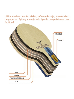 - Composición de 7 capas con 2 capas de carbono para mayor velocidad y potencia
